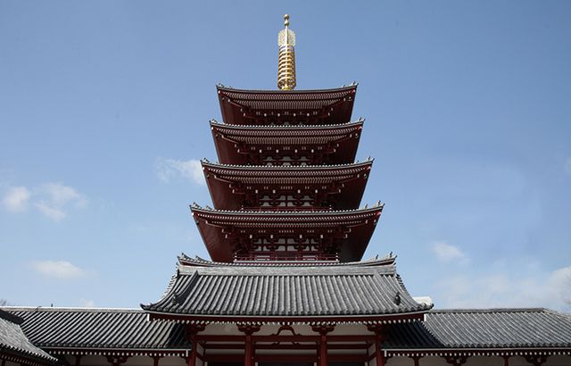 仲見世を経て辿り着いたのは、仁王像が睨みをきかせる宝蔵門。その先に、五重塔も威厳を持ってそびえ立っています。心を落ち着けて本堂へ向かい、ご本尊の聖観音菩薩にお参りしましょう。