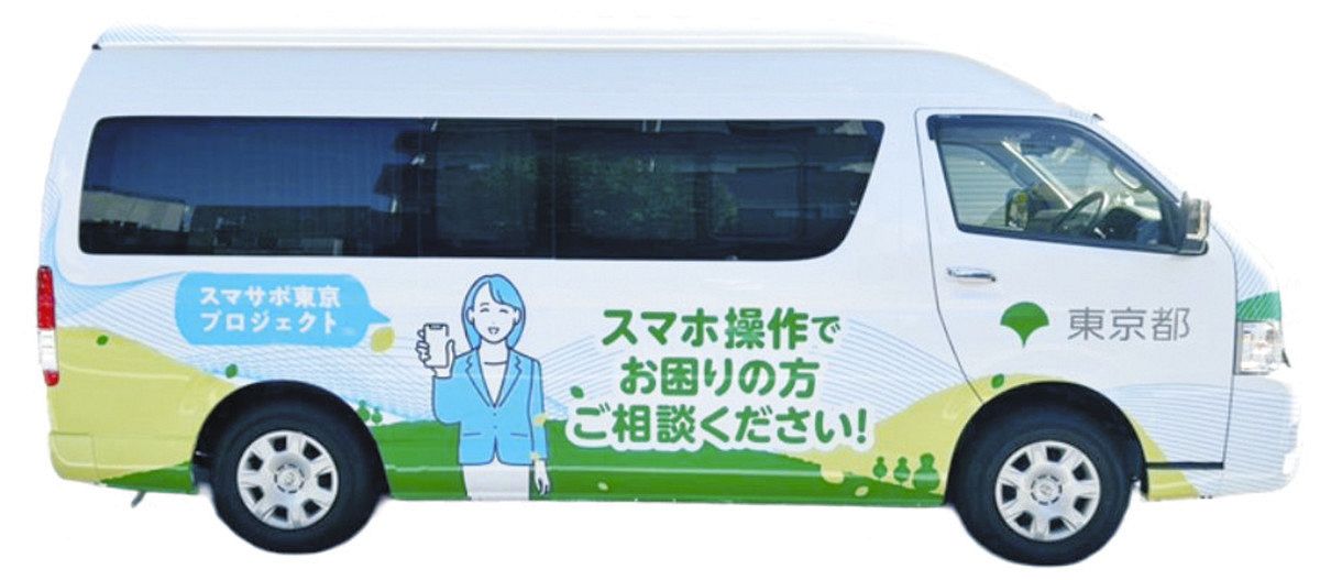 都は「誰一人取り残されないデジタル社会」を掲げ、高齢者向けスマホ教室や相談会を都内各地で開いている。移動型教室は、交通の便が悪い地域などに都が委託した業者が出向く。専用車には大型モニターやタブレットなどを備え、車内で講習する。