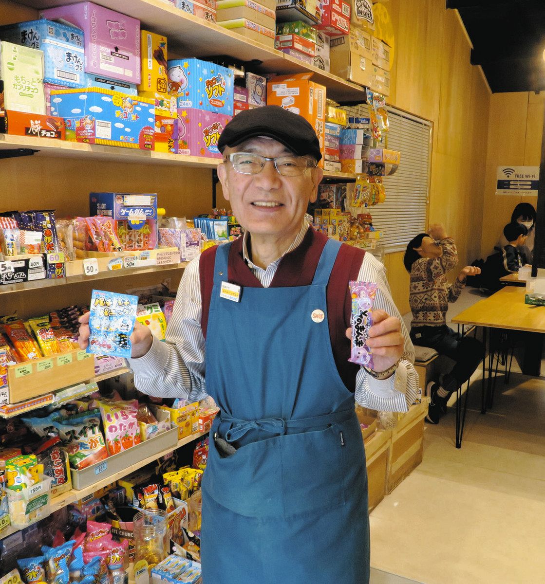 佐渡で育った子どものころは駄菓子屋によく通った。「故郷というと駄菓子屋のイメージ。それで定年退職したら駄菓子屋をやりたいと思うようになった。子どもたちが集まる楽しい居場所になって、そこから故郷という意識を持つようになれば良いなと」