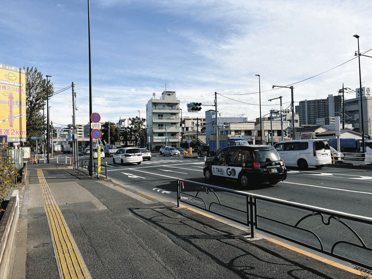 事故現場近くの道路=10日、東京都足立区で(三宅千智撮影)