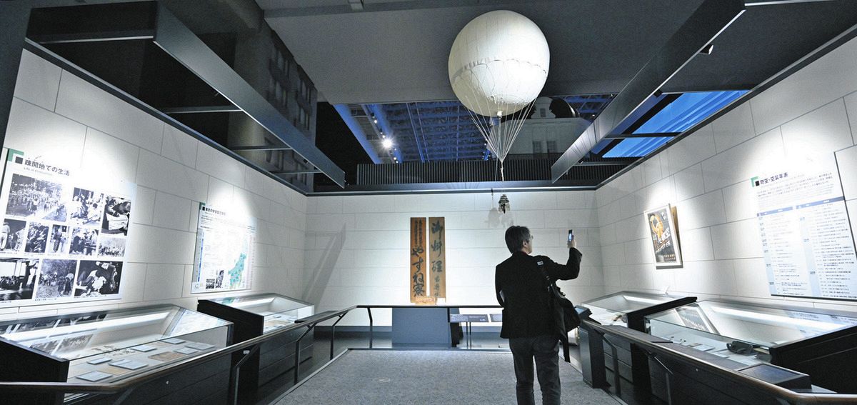 「風船爆弾」の復元模型などが並ぶ館内=25日、東京都墨田区の江戸東京博物館で(久野千恵子撮影)