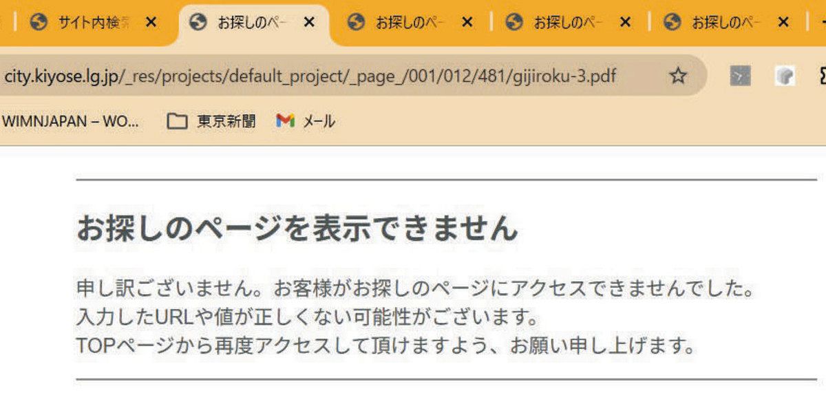 有識者会議の議事録が1日から非公開になっていた清瀬市のHP