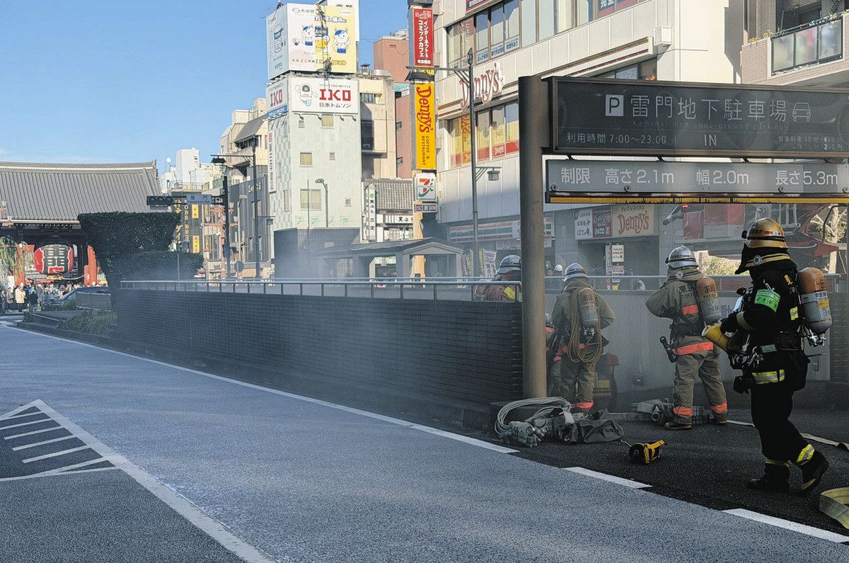 26日午後1時15分ごろ、東京都台東区雷門2の地下駐車場から出火したと消防に通報があった。東京消防庁によると、地下1階の駐車場にあった...