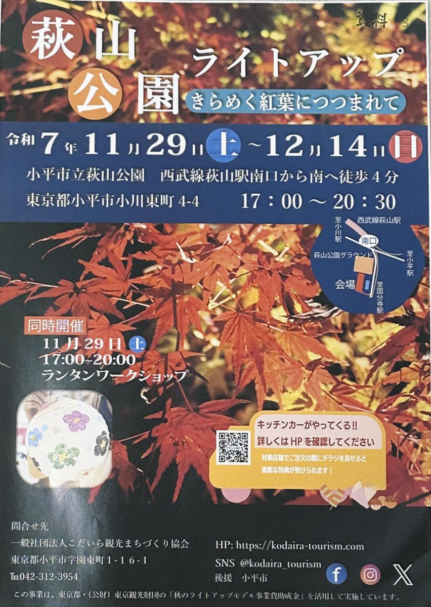 モミジ100本 ライトアップで幻想的に 小平・萩山公園で29日から