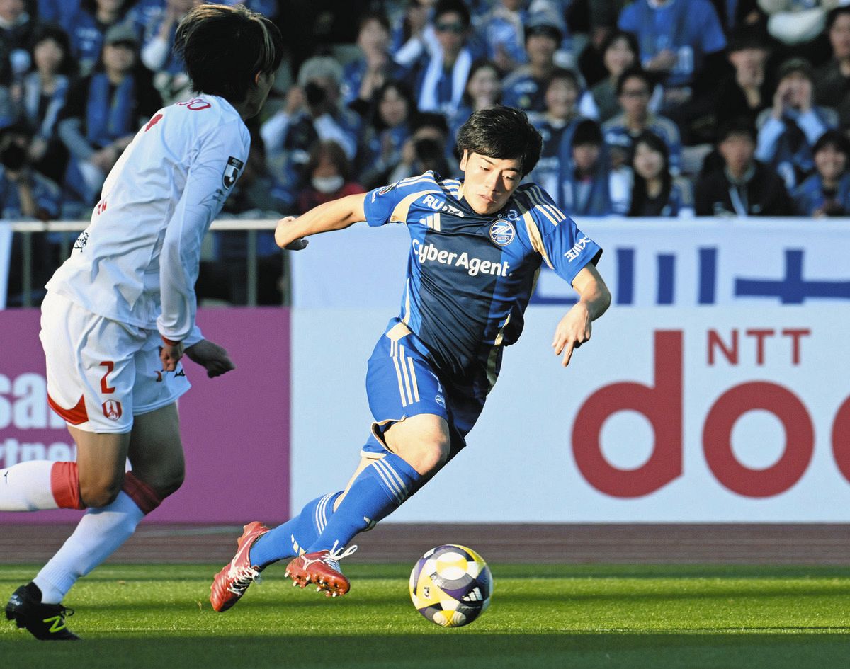 間合いをはかり、アクセルを強く踏み込むように一気にスピードを上げる。縦に突破してクロスを上げることもできれば、中央に切り込んで強烈なシュートを打つこともできる。2つのカードをちらつかせて相手DFを惑わせ、機敏な身のこなしで置き去りにしていった。